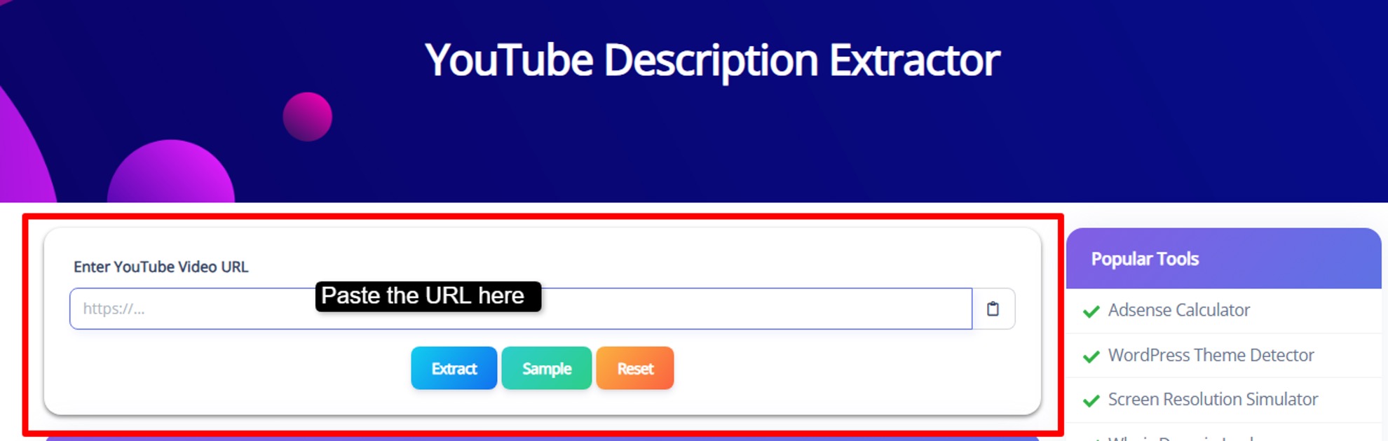 What really makes it so good is the speed. Just paste the video URL, click extract and your results appear in seconds. From there, you can simply copy the description and paste it directly into your YouTube dashboard for editing or inspiration.