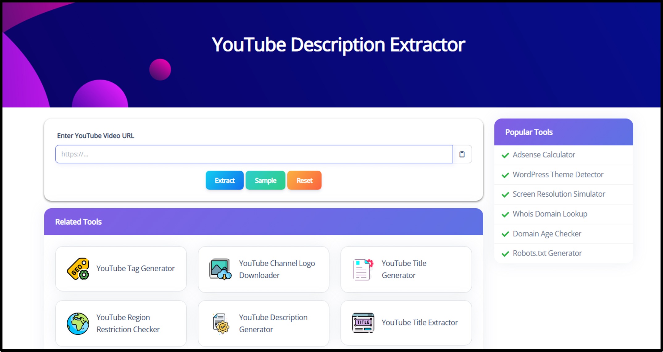 All these features turn the YouTube Description Extractor into more than just a simple tool, it becomes a smart assistant that saves your time and helps you make better, data-driven content decisions.